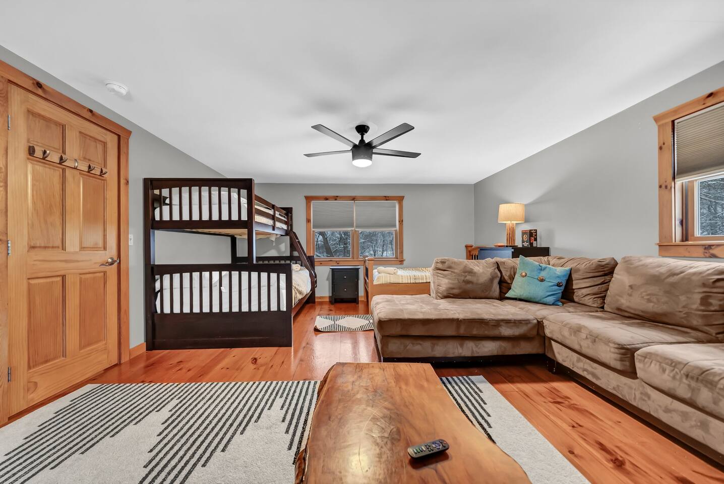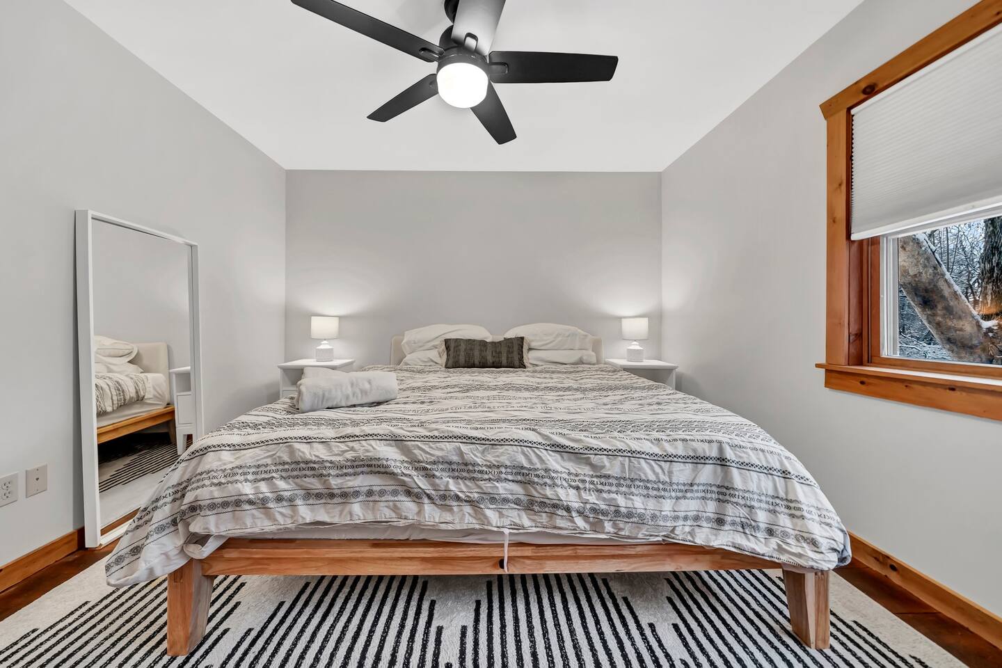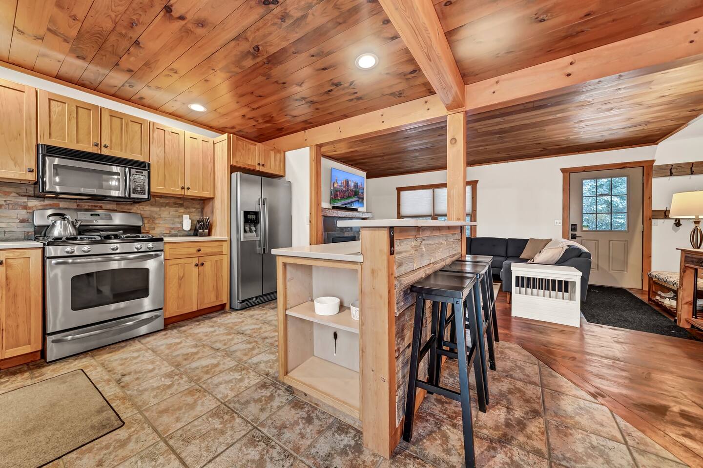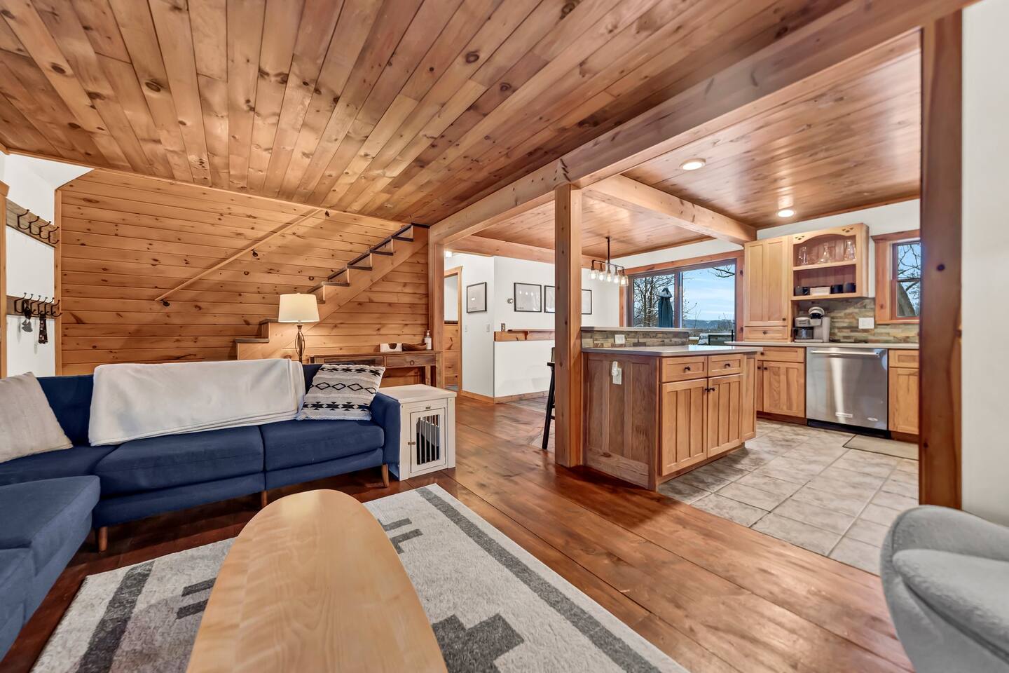 We've updated this already charming home with new modern furnishings from the best direct to consumer brands making the space so warm and inviting you won't want to leave the cabin. This property offers 3 acres and unlike many accommodations boasting acreage, it enjoys a large flat area in front to set up games or let the kids run. We've improved the WIFI to 100mps, added smart TV's, improved the outdoor living and comfortable seating which only enhances the already fabulous setting.