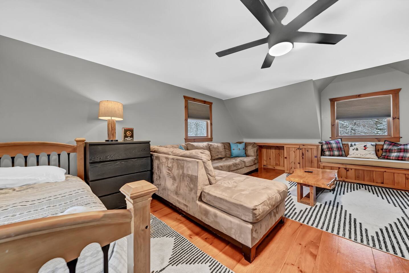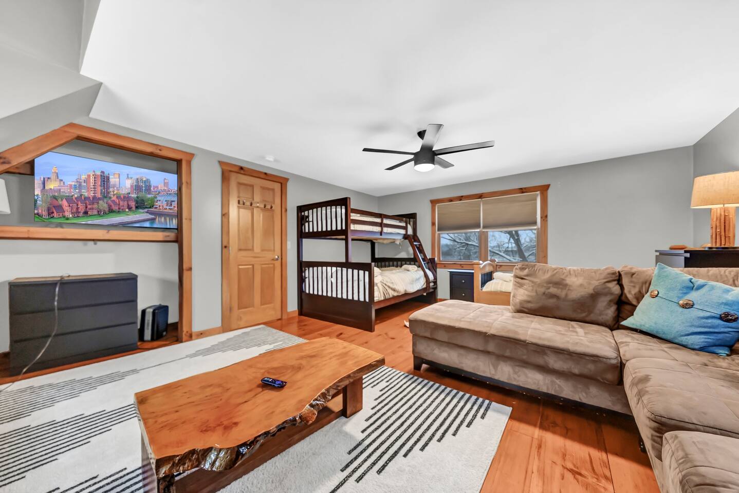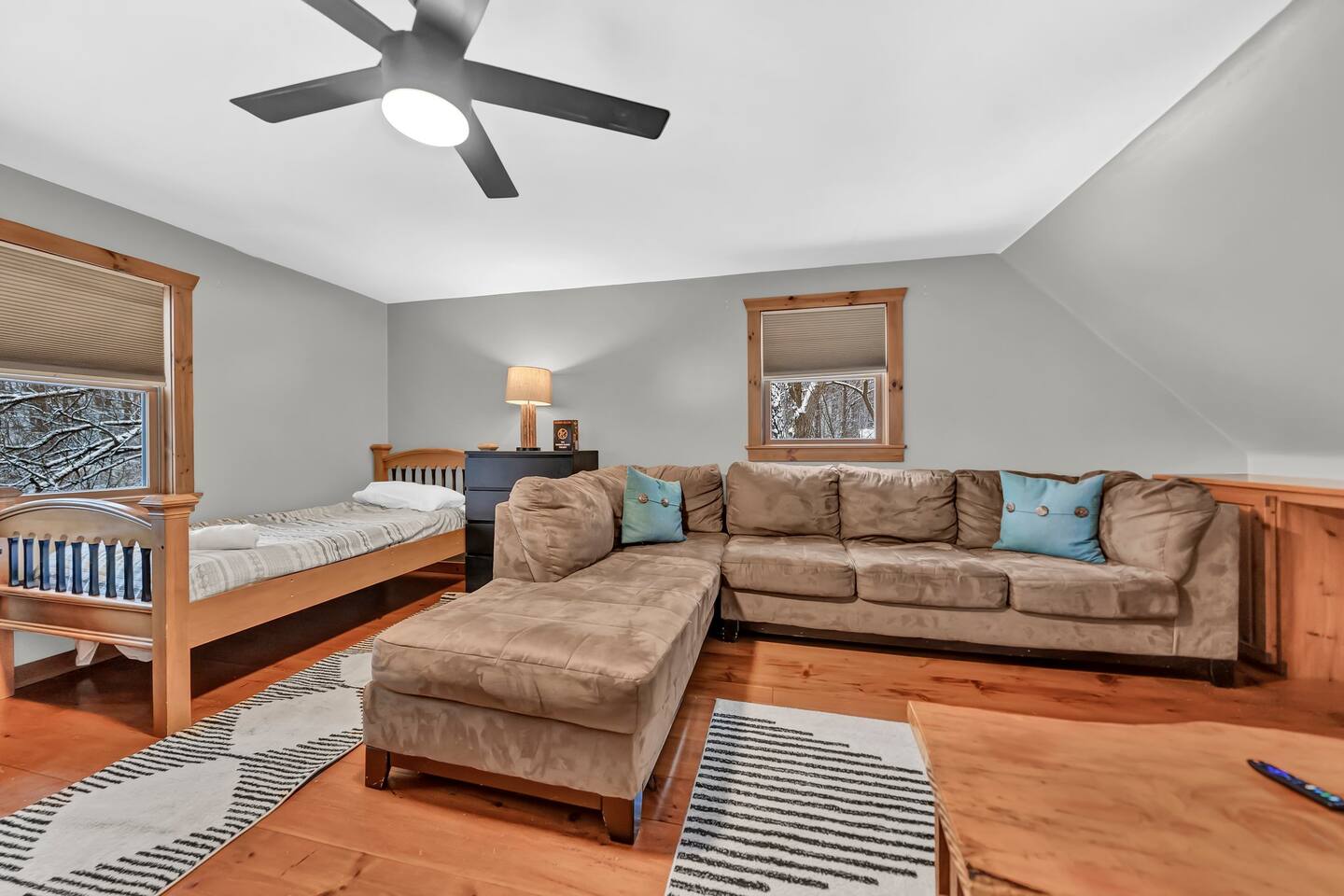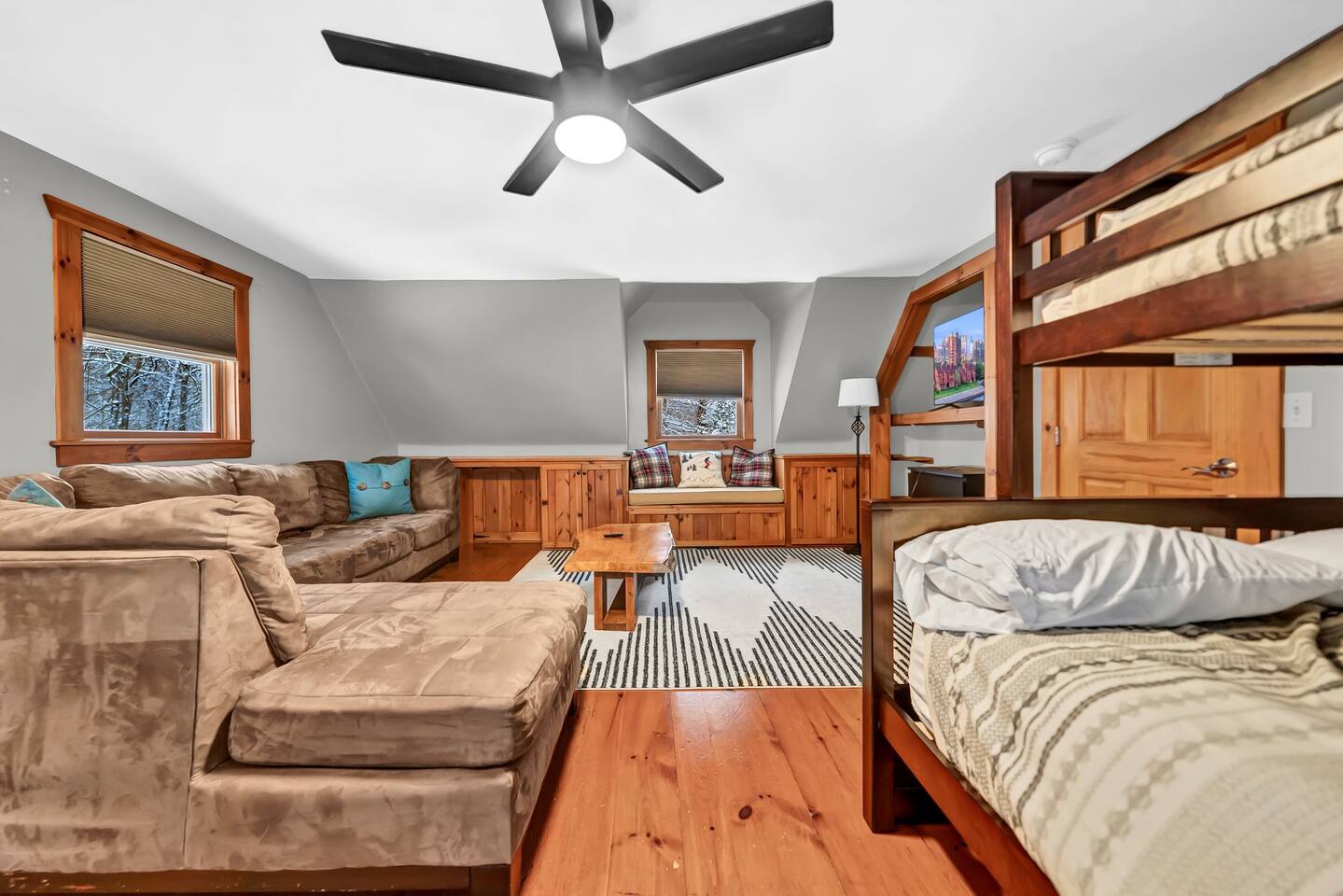We've updated this already charming home with new modern furnishings from the best direct to consumer brands making the space so warm and inviting you won't want to leave the cabin. This property offers 3 acres and unlike many accommodations boasting acreage, it enjoys a large flat area in front to set up games or let the kids run. We've improved the WIFI to 100mps, added smart TV's, improved the outdoor living and comfortable seating which only enhances the already fabulous setting.