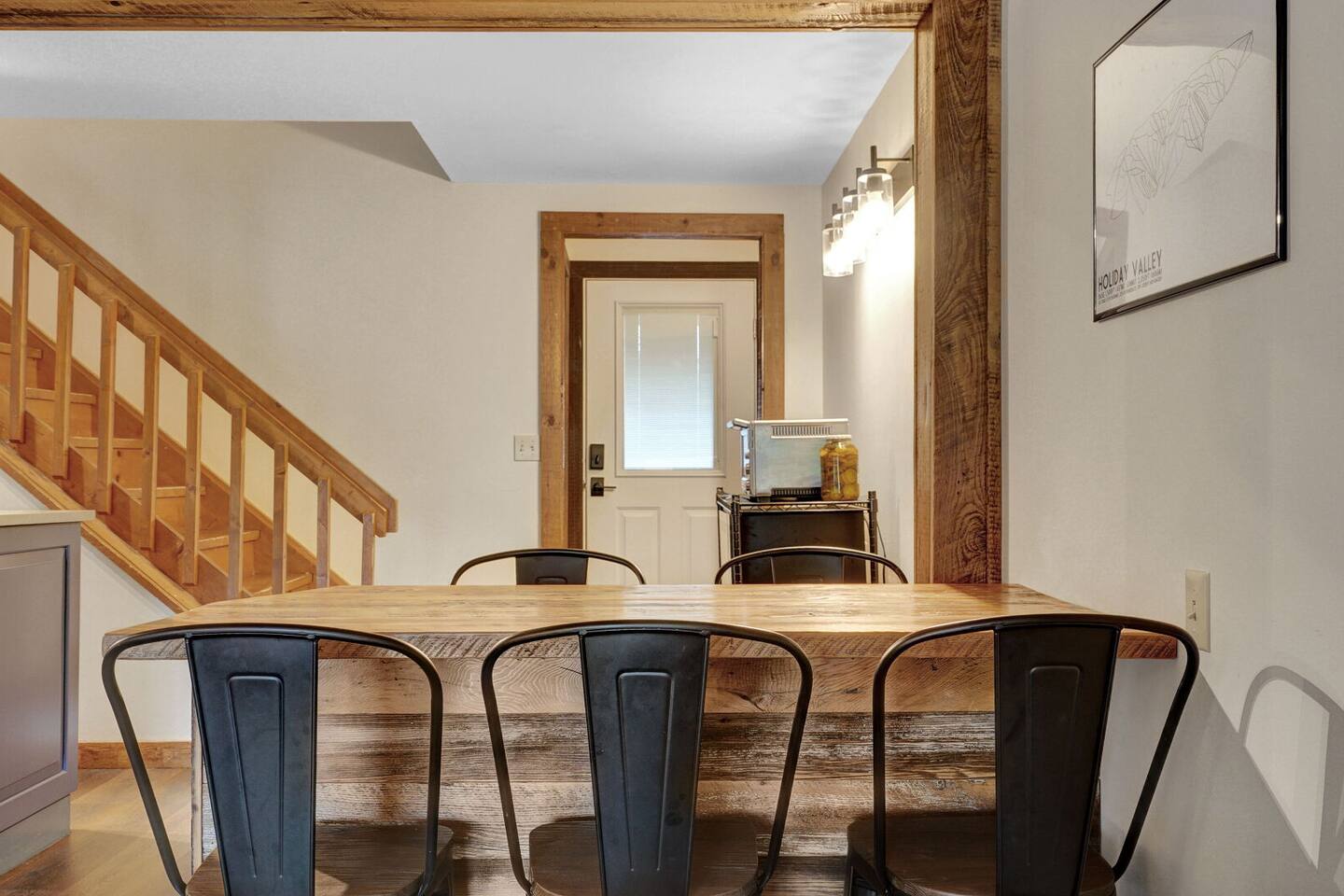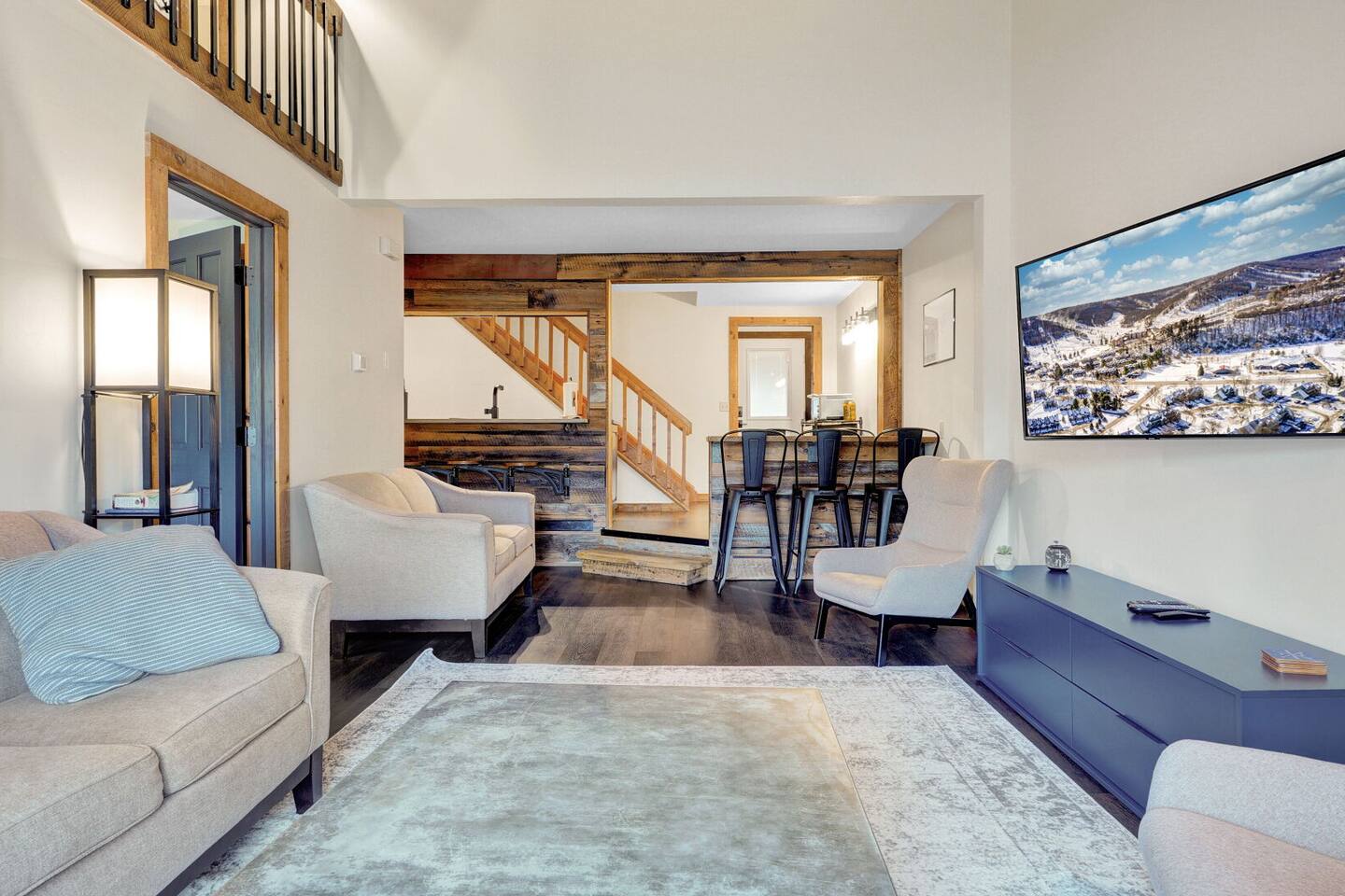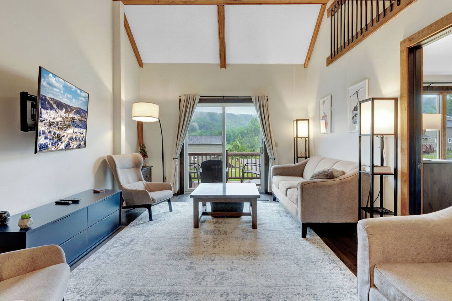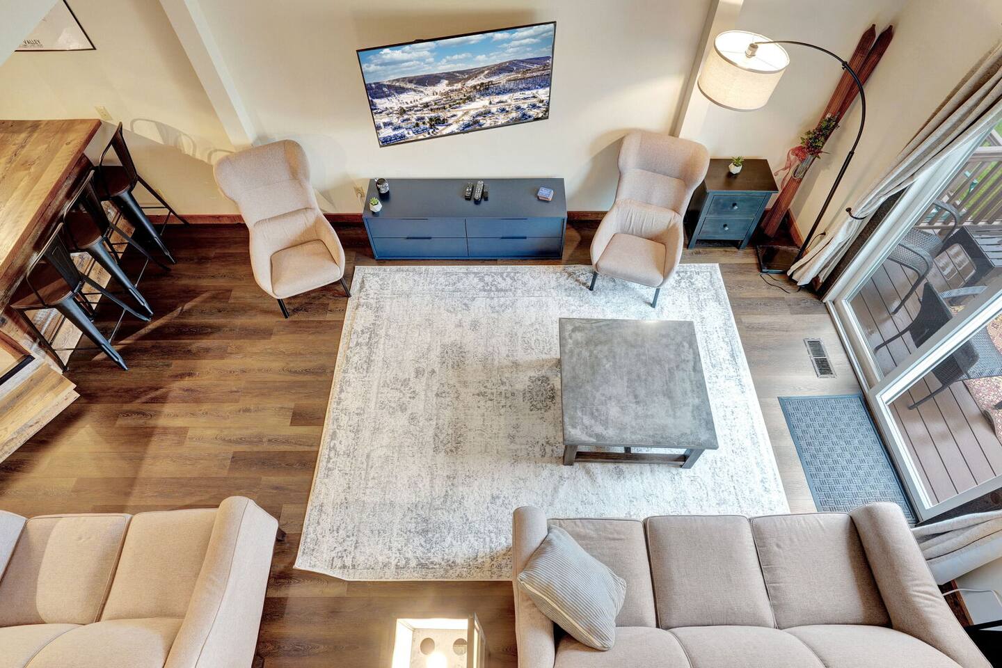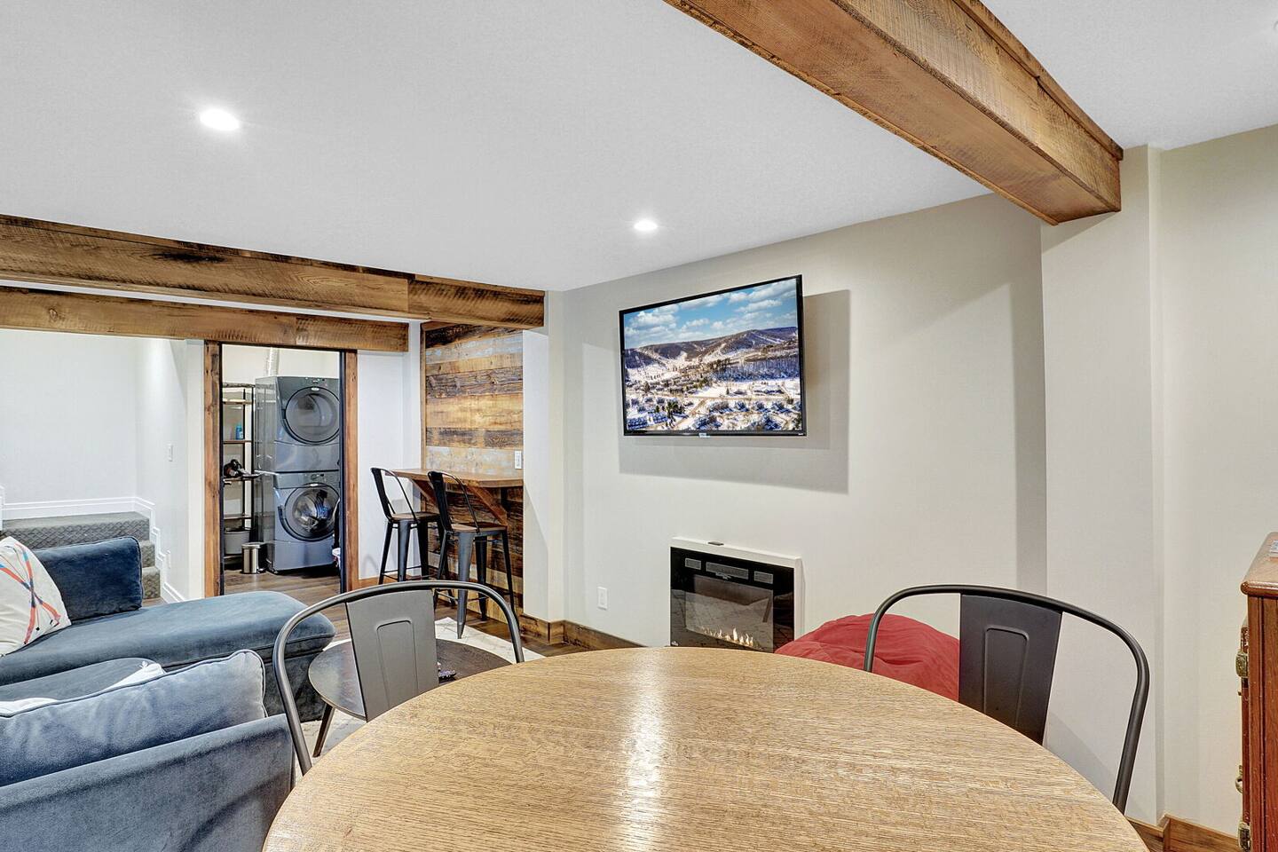 Renovated between 11/19-1/20 this home is one of the most modern units of the 64 at Fox Ridge. Currently there are two floors of updated space including a spacious living room with views of Holiday Valley that are only surpassed by those from the chair lifts! The galley kitchen is fully stocked with everything you need to cook meals for a crowd including a waffle maker for breakfast and a fondue set for apres ski. The wood treatment is from a local barn built circa 1840 and taken down by hand before being repurposed @ Valley View. The table top was custom made by a local craftsman and made of reclaimed White Oak along with the step to living room and loft. The loft railing was replaced with a support beam from the same barn. A variety of games, books and puzzles can be found in the media center and were curated to create engaging connections and create lifelong memories. When the day is done and everyone is exhausted the sleeping arrangements will be sure to please. The large master bedroom on the second floor enjoys plenty of soft natural light for a gentle morning wake up. You may not want to get out of the Thuma King Bed w/ Serta hybrid mattress and the softest sheets you’ve ever experienced. 42” smart TV recently installed! A large closet for extended stays and a handsome full bathroom is located in this room as well. A loft w/ a queen & armoire is located by walking through the master & overlooks living room. Don’t fret- the same Thuma/Serta combo is set up for a good nights rest here too. You’ll find a private bedroom off of the living room which has a triple bunk bed to sleep up to 5. The views from this bunk room are spectacular! The smart TV will have you binging on whatever your guilty pleasure is if the weather just isn’t cooperating. All the apps at your are fingertips including Disney+, Netflix, Showtime, Prime, HBO & Spectrum cable. But hey- get out and explore the Aspen of the East! Whether it’s a hike, a hamburger, a massage or a movie- our in house guide will ensure your experience in EVL is the best it can be! By the way, with a brand new high efficiency furnace and central air conditioning you'll be comfortable in a blizzard or a heat wave. The tank-less water heater will provide an endless supply of hot water so everybody can hit the shower then the town so fresh and so clean. Full basement with walk out doors and another beautiful view perfect for larger groups looking to have more space and more to do while inside. 55” smart TV and electronic dart board will provide hours of entertainment for adults and kids alike. The basement can sleep four with a full size memory foam sleeper sofa and full size Murphy Bed. There is a brand new full bathroom,Ski Locker with boot/glove dryer and large laundry room. Plenty of room to spread out in style and comfort around the electric fireplace.