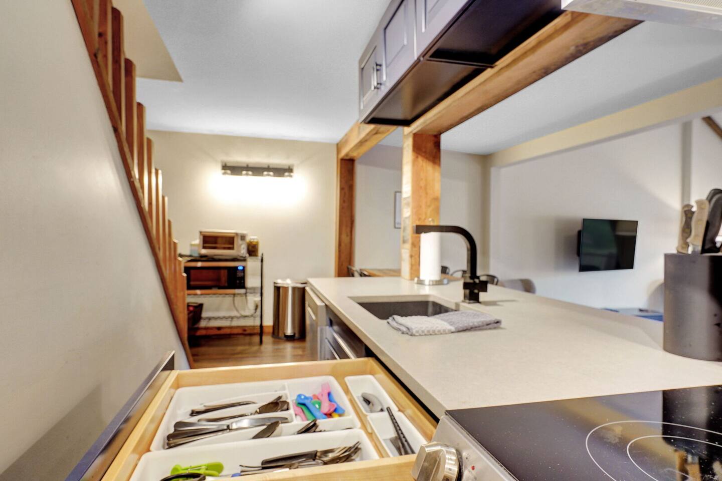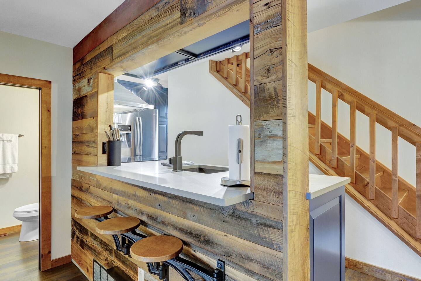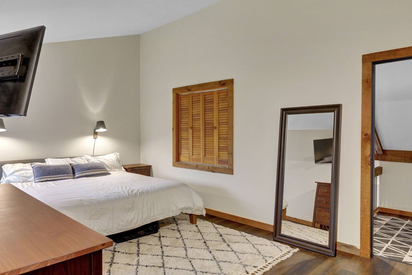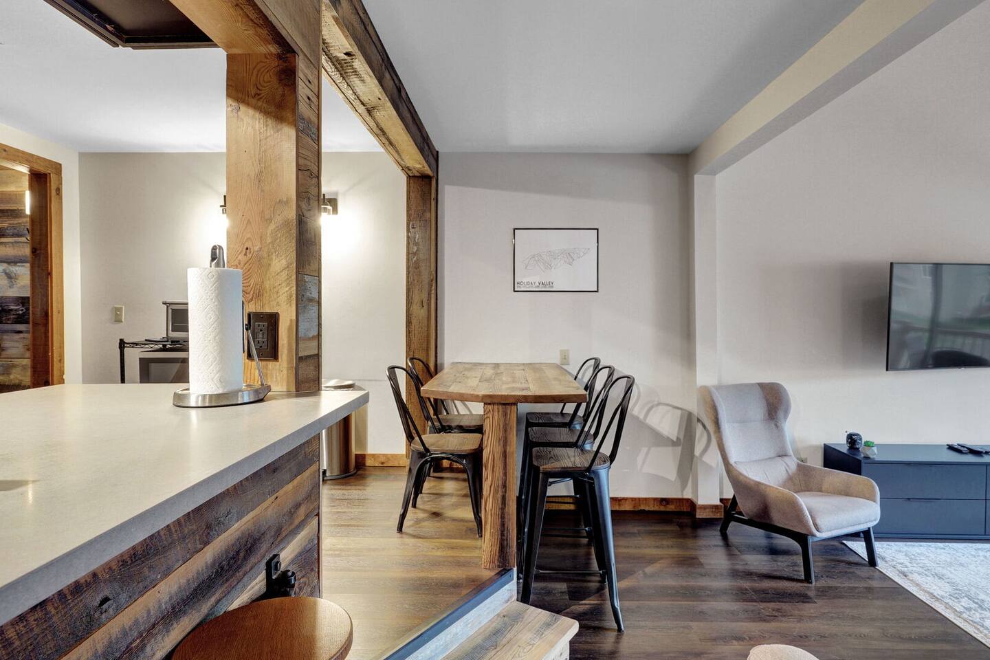 Renovated between 11/19-1/20 this home is one of the most modern units of the 64 at Fox Ridge. Currently there are two floors of updated space including a spacious living room with views of Holiday Valley that are only surpassed by those from the chair lifts! The galley kitchen is fully stocked with everything you need to cook meals for a crowd including a waffle maker for breakfast and a fondue set for apres ski. The wood treatment is from a local barn built circa 1840 and taken down by hand before being repurposed @ Valley View. The table top was custom made by a local craftsman and made of reclaimed White Oak along with the step to living room and loft. The loft railing was replaced with a support beam from the same barn. A variety of games, books and puzzles can be found in the media center and were curated to create engaging connections and create lifelong memories. When the day is done and everyone is exhausted the sleeping arrangements will be sure to please. The large master bedroom on the second floor enjoys plenty of soft natural light for a gentle morning wake up. You may not want to get out of the Thuma King Bed w/ Serta hybrid mattress and the softest sheets you’ve ever experienced. 42” smart TV recently installed! A large closet for extended stays and a handsome full bathroom is located in this room as well. A loft w/ a queen & armoire is located by walking through the master & overlooks living room. Don’t fret- the same Thuma/Serta combo is set up for a good nights rest here too. You’ll find a private bedroom off of the living room which has a triple bunk bed to sleep up to 5. The views from this bunk room are spectacular! The smart TV will have you binging on whatever your guilty pleasure is if the weather just isn’t cooperating. All the apps at your are fingertips including Disney+, Netflix, Showtime, Prime, HBO & Spectrum cable. But hey- get out and explore the Aspen of the East! Whether it’s a hike, a hamburger, a massage or a movie- our in house guide will ensure your experience in EVL is the best it can be! By the way, with a brand new high efficiency furnace and central air conditioning you'll be comfortable in a blizzard or a heat wave. The tank-less water heater will provide an endless supply of hot water so everybody can hit the shower then the town so fresh and so clean. Full basement with walk out doors and another beautiful view perfect for larger groups looking to have more space and more to do while inside. 55” smart TV and electronic dart board will provide hours of entertainment for adults and kids alike. The basement can sleep four with a full size memory foam sleeper sofa and full size Murphy Bed. There is a brand new full bathroom,Ski Locker with boot/glove dryer and large laundry room. Plenty of room to spread out in style and comfort around the electric fireplace.