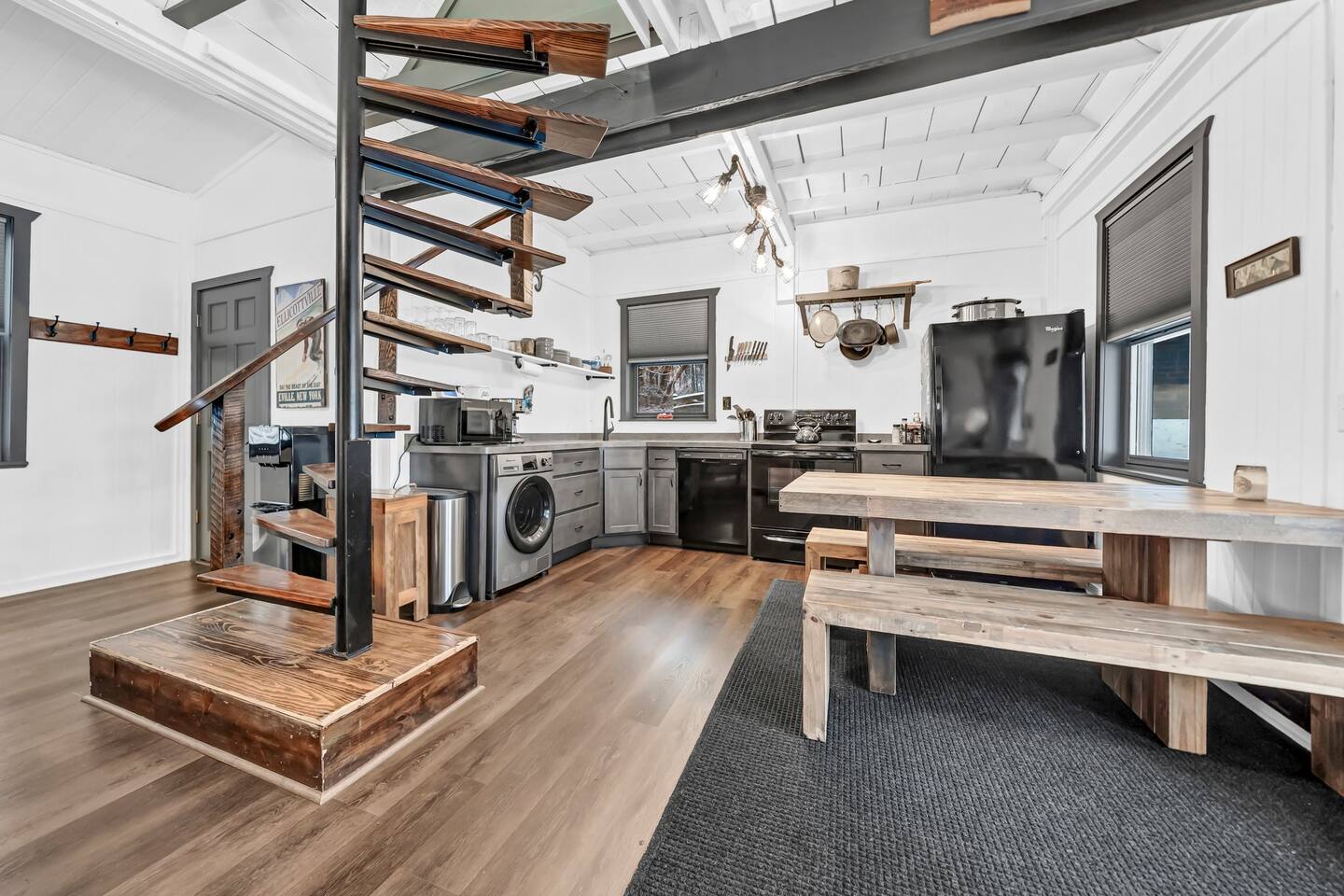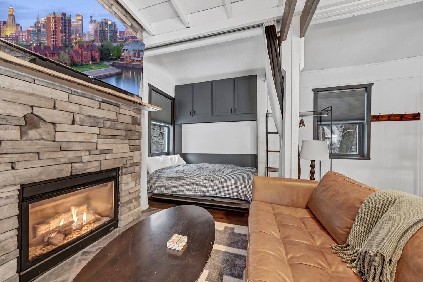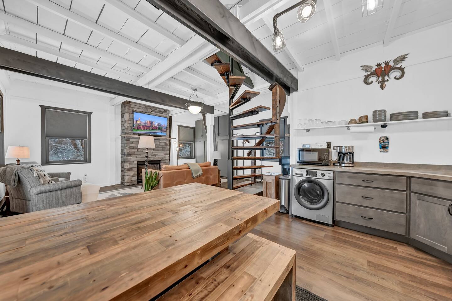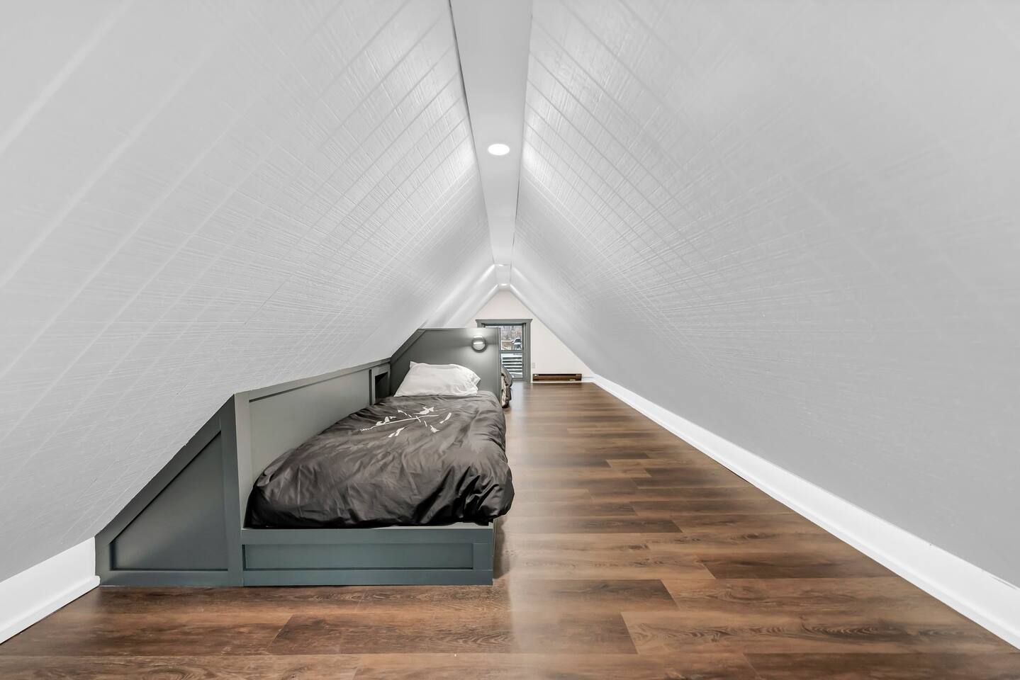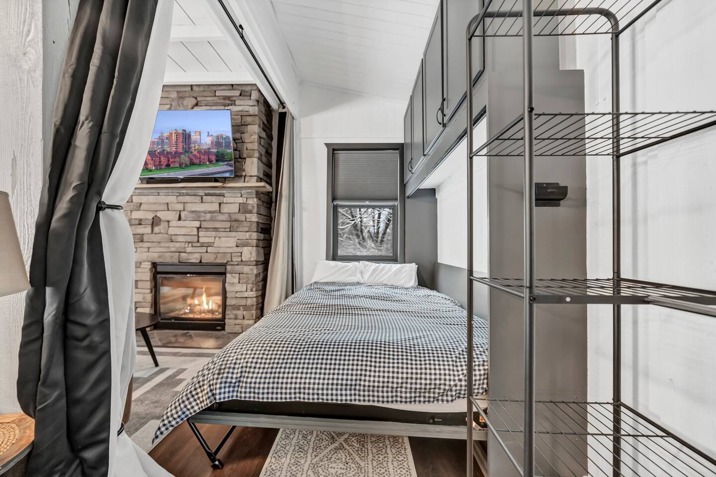 Second floor beds are accessed by spiral staircase. Please use handrail.