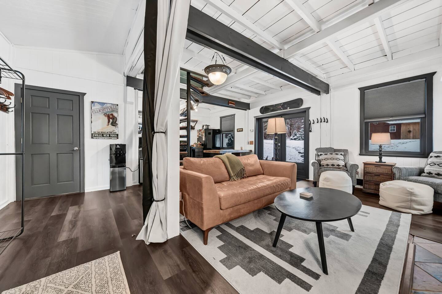 Little cabin located 10 minutes outside of Ellicottville, NY. Perfect getaway for up to four people looking to enjoy the surroundings and each others company. A peaceful stream runs directly behind the cabin lulling you to sleep at night and attracting wildlife in search of a sip. Fully stocked kitchen as well as a charcoal grill. Efficient, stylish space is designed with your comfort and relaxation in mind. Firepit with wood included(bring lighter).